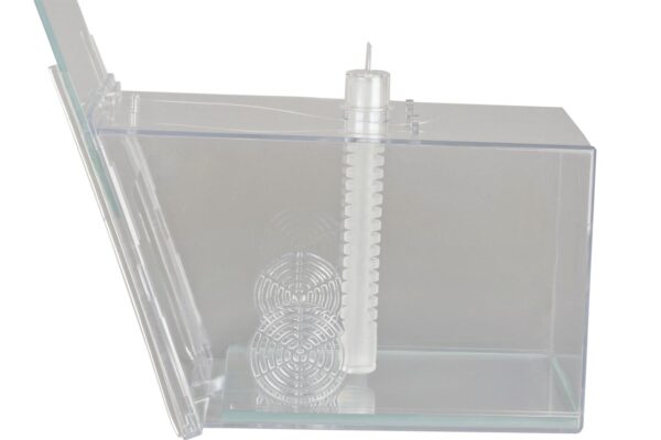 - Mounting: Secure the trap to the inside glass using the rubber sucker twin (double suction cups). It is recommended to use three suckers to ensure the trap is stable and does not need to rest on the aquarium base.