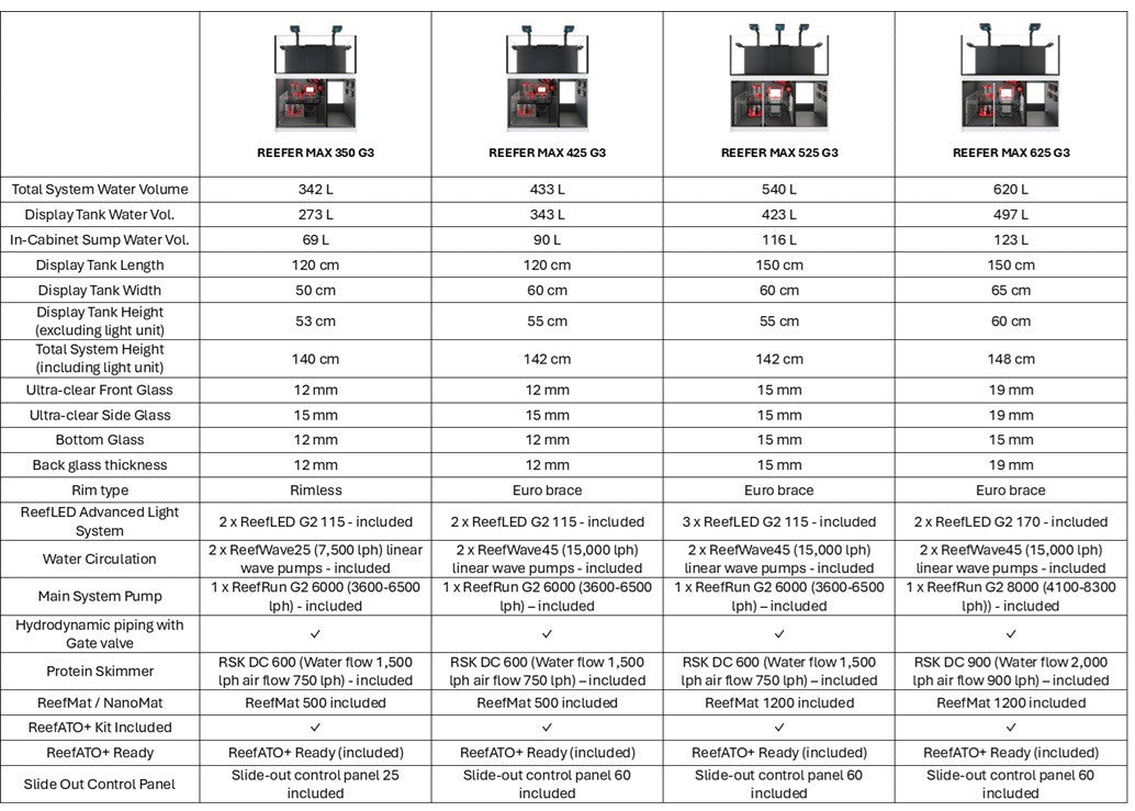 Red Sea’s REEFER G3’s benefit from a fully redesigned flow system and new hydrodynamically superior piping, delivering up to 50% more water circulation while significantly reducing energy consumption. Models 425 and above now feature euro-bracing for extra strength and durability.