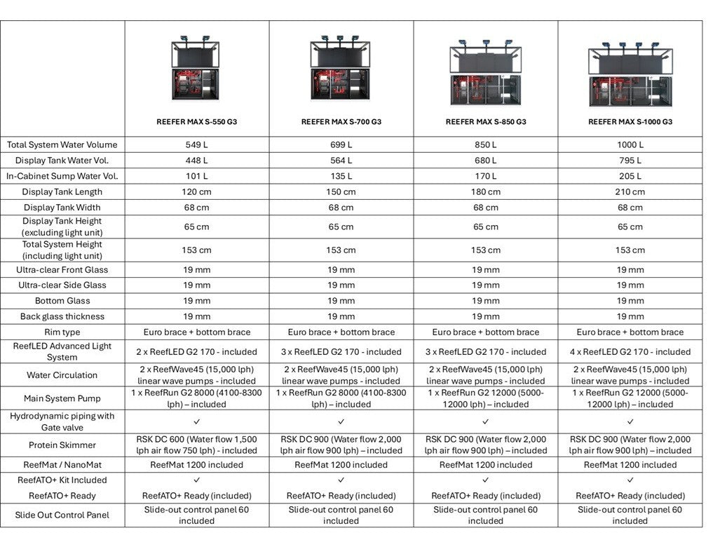 Red Sea’s REEFER G3’s benefit from a fully redesigned flow system and new hydrodynamically superior piping, delivering up to 50% more water circulation while significantly reducing energy consumption. Models 425 and above now feature euro-bracing for extra strength and durability.